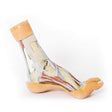 Ein detailliertes anatomisches Modell, das die oberflächlichen und tiefen Strukturen des distalen Unterschenkels und Fußes zeigt, ideal für medizinische Studien und Demonstrationen.