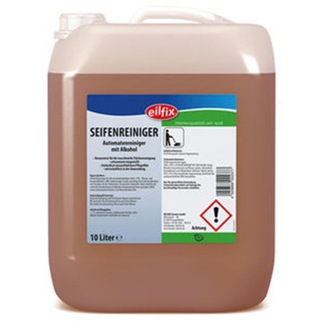 Entfernt fettige, ölige Verschmutzungen sowie Absatzstriche auf PVC-, Stein-, Linoleum- und Laminatböden. Streifenfreier Glanz auch auf empfindlichen Böden! Polierbar. Eilfix Seifenreiniger mit Alkohol ist schaumarm eingestellt und für die Verwendung in Maschinen konzipiert. Polierbar Konzentrat für die maschinelle Flächenreinigung schaumarm eingestellt wirtschaftlich in der Anwendung hinterlässt wasserlöslichen Pflegefilm