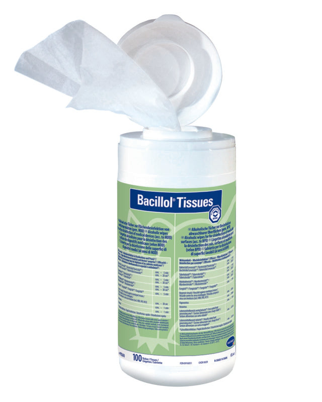 - Mit Bacillol® AF vorgetränkte gebrauchsfertige Desinfektionstücher