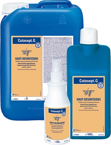 Cutasept® G ist gebrauchsfertig und wird direkt auf die zu desinfizierende Hautpartie aufgesprüht/aufgetragen. Der Sprühvorgang sollte in einem möglichst geringen Abstand zum betreffenden Hautareal er folgen, um eine ausreichende Benetzung sicherzustellen und eine Aerosolbildung zu vermeiden. Alternativ kann Cutasept® G auf einen sterilen Tupfer aufgesprüht werden. Anschließend wird die zu desinfizierende Hautpartie mit dem Tupfer abgerieben. Dabei ist auf eine satte Benetzung des Hautareals zu achten.