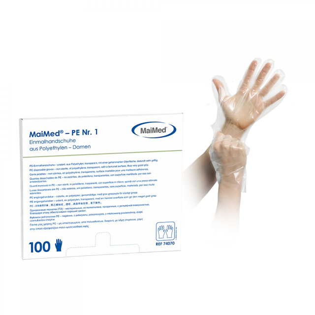 MaiMed® - PE PF Handschuhe sind zum Schutz vor Schmutz geeignet. PE-Handschuhe aus Polyethylen