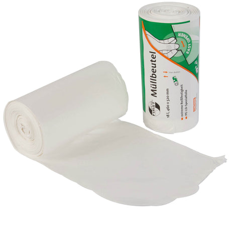 Normaler Preis €274Grundpreis /Nicht verfügbarAuf Lager (86 Einheiten)Müllbeutel 18-Liter weiß 460 x 520 mm ca. 272 g / Rolle