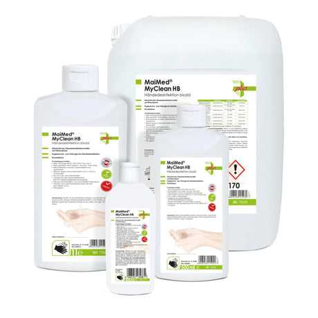 Normaler Preis ab €1045Grundpreis€4180 / mNicht verfügbarBegrenzter Vorrat (6 Einheiten)MaiMed MyClean HB Händedesinfektionsmittel biozid