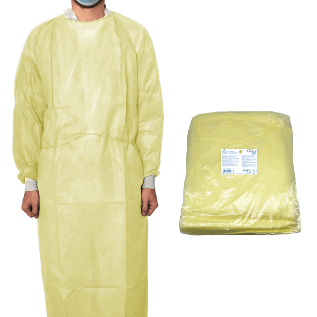 Viruguard Schutzkittel in Gelb, ideal für den Schutz in medizinischen und hygienischen Umgebungen.