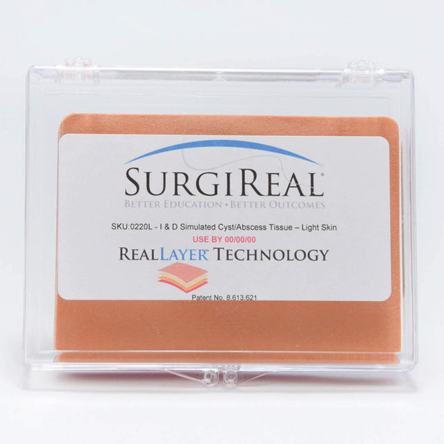 Simuliertes Gewebe mit Zyste und Abszess, das realistische medizinische Trainingsmöglichkeiten bietet. Ideal für die Ausbildung im Umgang mit Hauterkrankungen und chirurgischen Eingriffen.