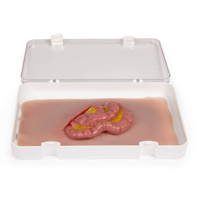 Die Erler-Zimmer Wundmoulage Dünndarmaustritt ist ein realistisches medizinisches Trainingsmodell, das zur Simulation und Übung von Notfallmaßnahmen bei einem Dünndarmaustritt dient.