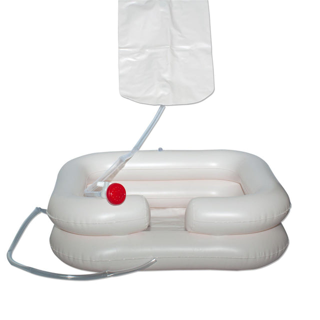 Aufblasbares Haarwaschbecken für eine komfortable Kopfwäsche, ideal für die Pflege im Bett oder auf Reisen.