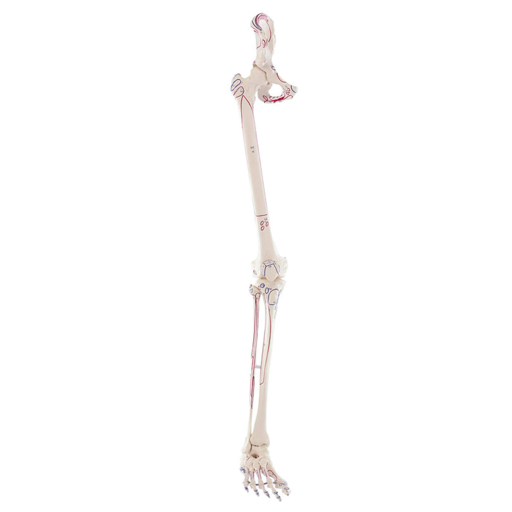 Das Erler-Zimmer Beinskelett Modell mit Beckenhälfte und Muskelmarkierung ist ein detailliertes anatomisches Modell, das die Struktur des menschlichen Beins inklusive Beckenhälfte darstellt. Es ist mit Markierungen versehen, die die wichtigsten Muskelansätze und -ursprünge zeigen, und eignet sich ideal für den Einsatz in der medizinischen Ausbildung und für anschauliche Demonstrationen.