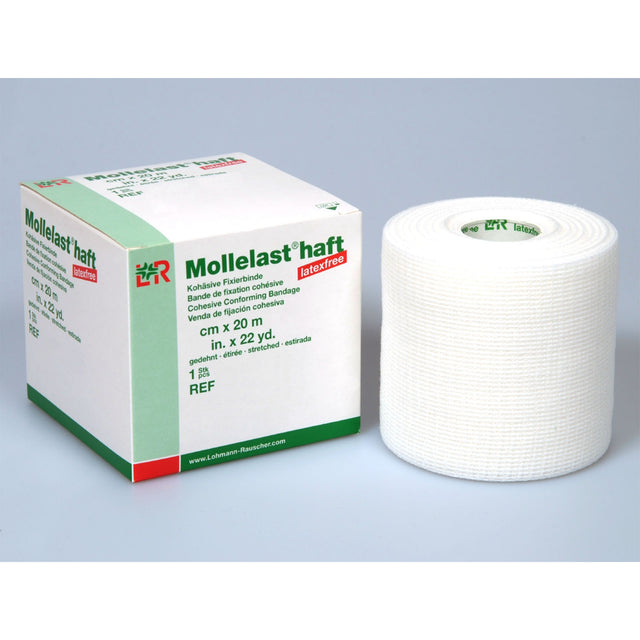 Die kohäsive Fixierbinde Mollelast haft latexfrei bietet eine Leichte Handhabung in kombination mit hoher Sicherheit.