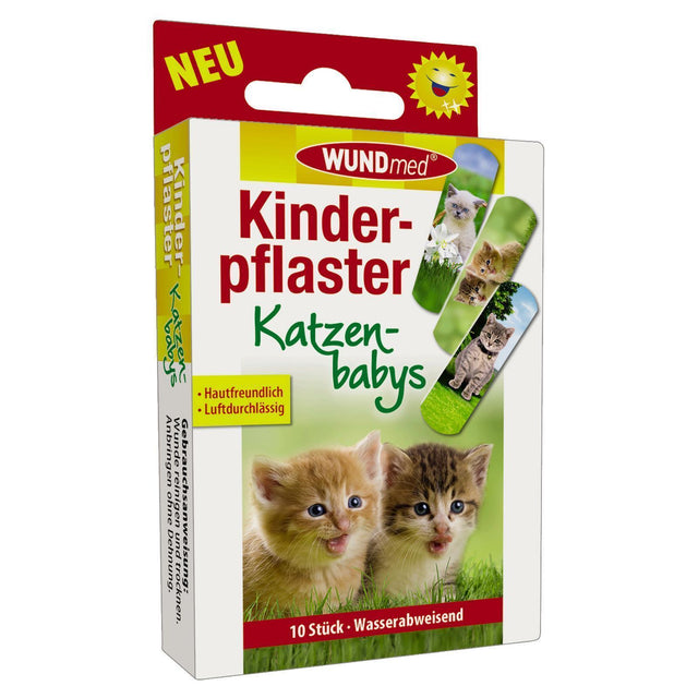 Wundmed Kinderpflaster mit niedlichen Katzenbaby-Motiven, ideal für kleine Verletzungen und zur Freude der Kinder.