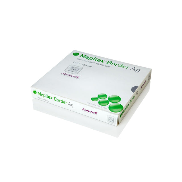 Mepilex Border Ag ist ein selbsthaftender, hochabsorbierender Komplettverband mit Silbersulfat zur Versorgung kritisch kolonisierter und infizierter oberflächlicher Wunden. Mepilex Border Ag mit Safetac Technologie inaktiviert wundspezifische Erreger innerhalb von30 Minuten und langanhaltend bis zu 7 Tagen. Geeignet für mittelstark exsudierende, infizierte Wunden oder Wunden mit Infektionsrisiko.